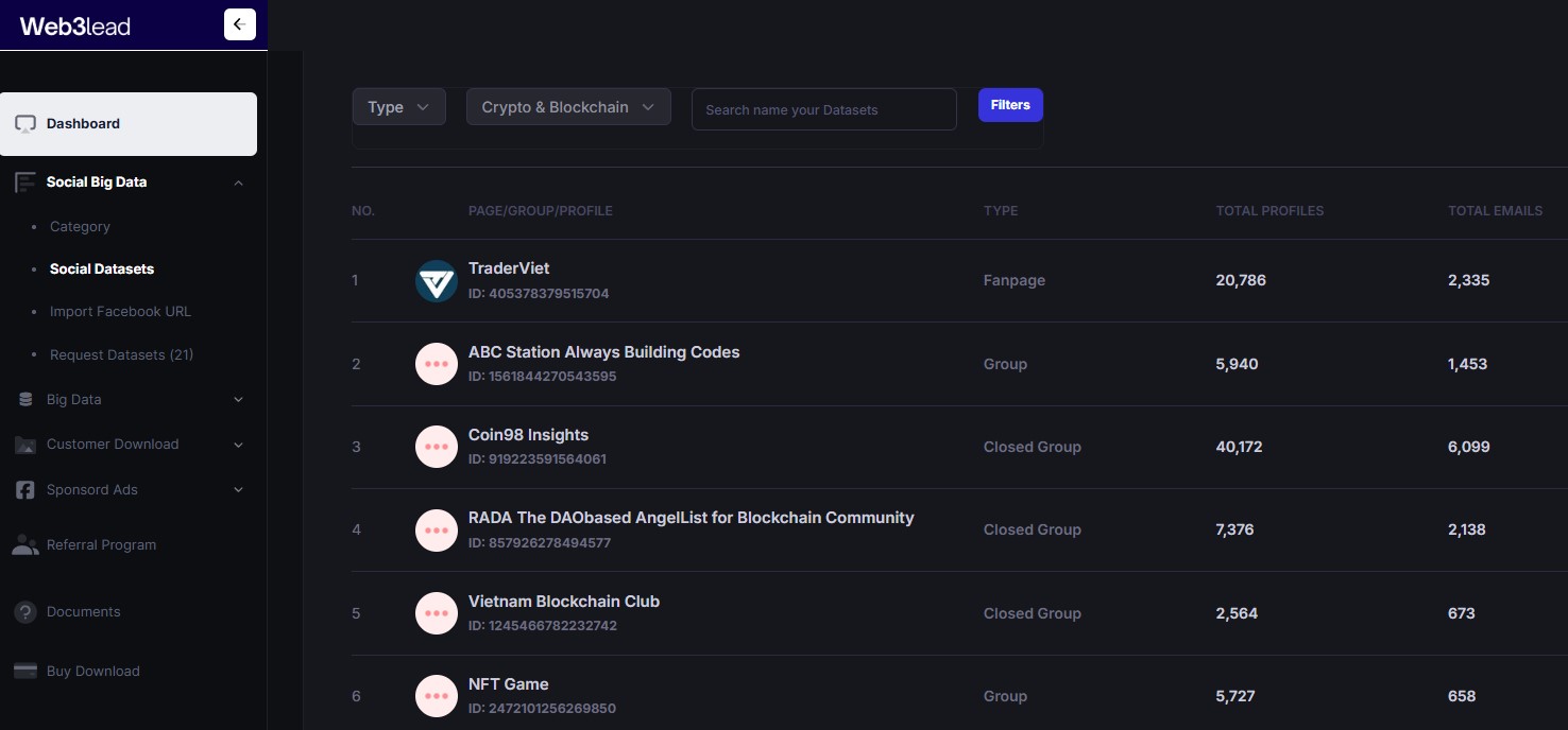 With +400M social profiles and 1.2M Crypto & Web3 communities analyzed, Web3Lead.com delivers accurate insights to guide strategy, optimize marketing, and accelerate user growth.